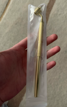 Fick i en ren och förseglad förpackning, det inger förtroende. Pennan har en vacker gyllene finish och verkar robust.
